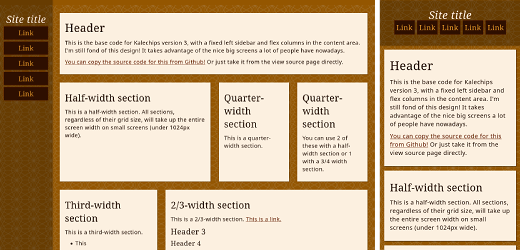 This is the base code for Kalechips version 3, with a fixed left sidebar and flex columns in the content area.