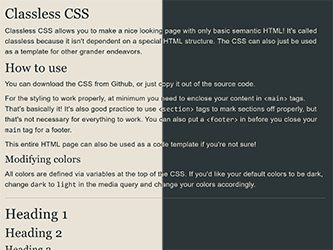 Classless CSS allows you to make a nice looking page with only basic semantic HTML, allowing you to focus on just writing the damn page instead of fiddling with styling. It's accessible, responsive, and easy to use. It has light/dark mode built in, and the colors are easily customizable if you hate what I picked.