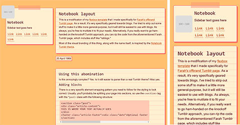 A fork of Fun with flexbox that I used to make a fake Tumblr page. The visual styling is based on the Notebook Tumblr theme (hence the name as I lack creativity).