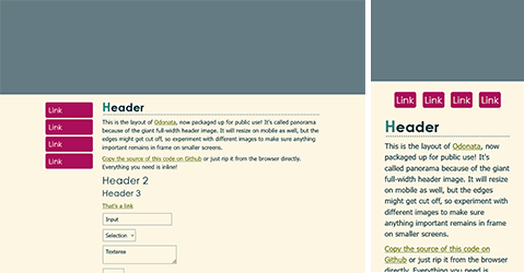 This layout is used on Odonata. It is so named because it accommodates a beautiful full-width banner image. It was designed for just a handful of links, but you can theoretically add as many as you'd like without breaking anything. And it has built-in light/dark mode!